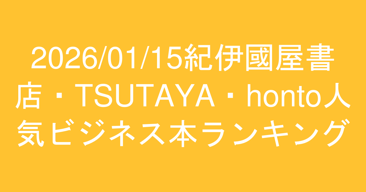 2026年1月9日~1月15日の丸善書店・ジュンク堂書店・文教堂のビジネス本の人気書籍ランキングまとめ